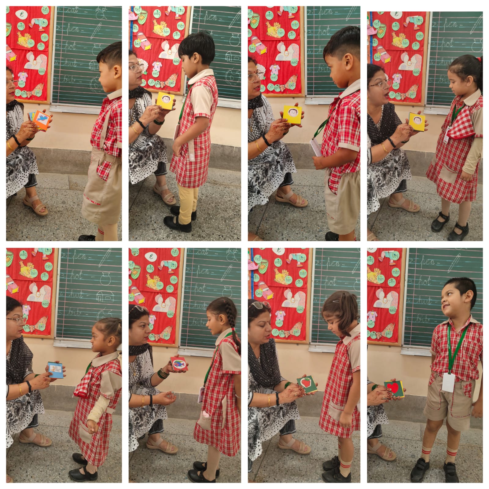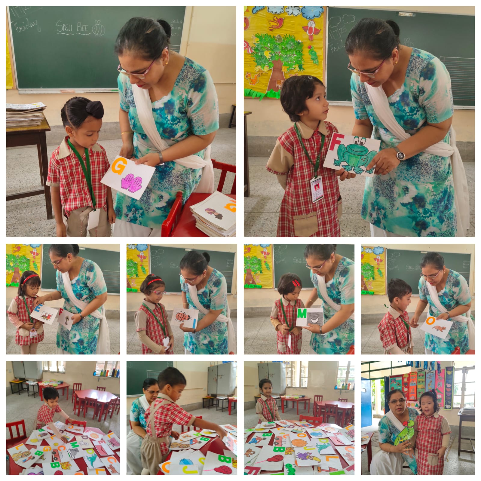 An intra – class Spell Bee activity was organized for the students of classes LKG and UKG in their respective classrooms on 1st August 2025 .It aimed at giving a platform to learn phonics and consequentlyenrich their vocabulary. LKG with picture recognition and UKG with three letter words. To conduct this activity flash cards were made for LKG and a word bank was created for UKG. Each student was given a chance to recognise and spell the given pictures. The students who recognised and spelled the words correctly in the first round qualified for the next round where the competition was tough and we got our three winners. The objective of the competition was to enhance their vocabulary by encouraging them to explore English language and improve their communication skills.