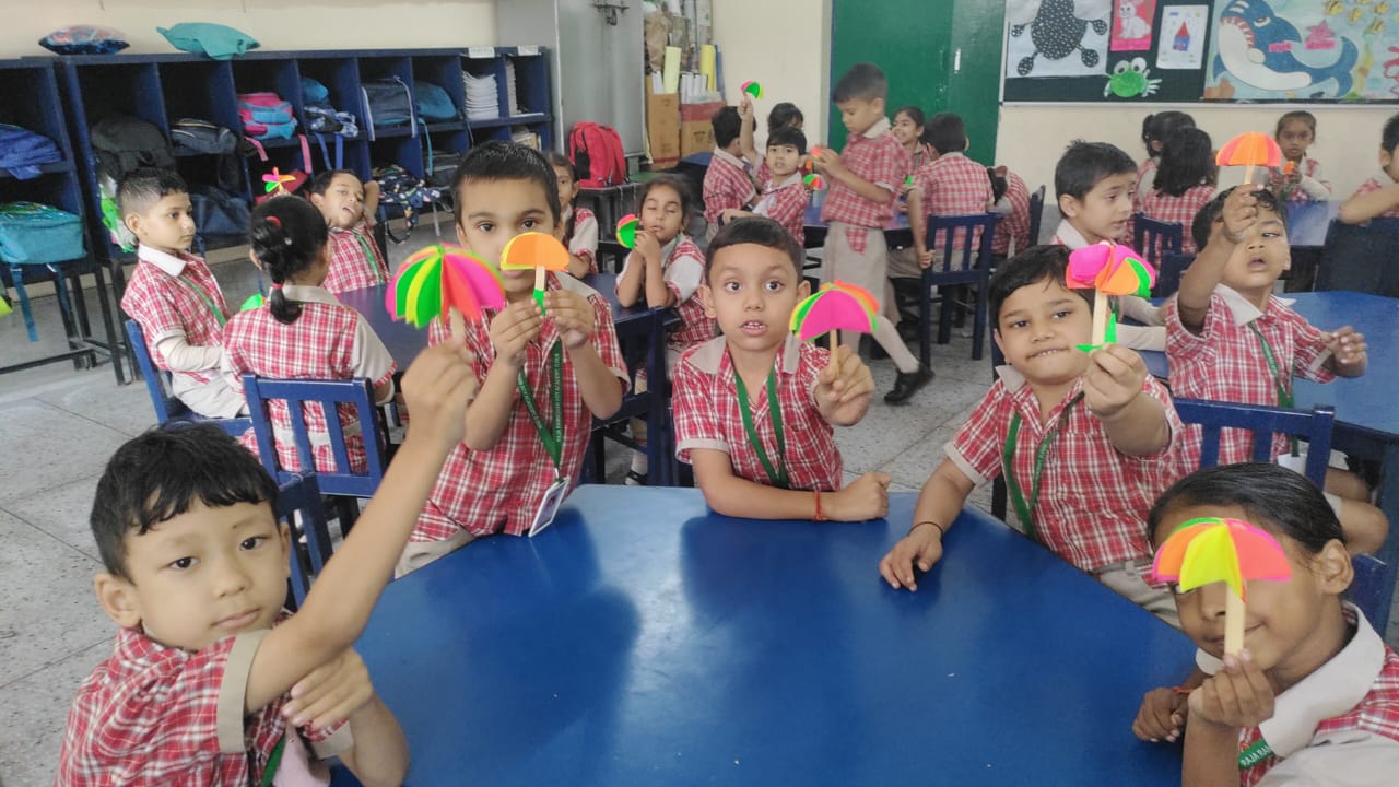 The Monsoon Season Activity was organized on Friday, 29th August 2025, at Raja Rammohan Roy Academy for the students of Nursery, LKG, and UKG. The children were introduced to the monsoon season through an engaging and interactive session where they learned about different things associated with the monsoon such as clouds, rain, frogs, earthworms, snails, umbrellas, raincoats, and gumboots. Adding to the fun, children came dressed in colourful raincoats and gumboots while carrying umbrellas. They relished delicious boiled corn cobs and also participated in a creative craft activity based on the monsoon theme. The children had a great time participating in this exciting, joyful, and educational activity.