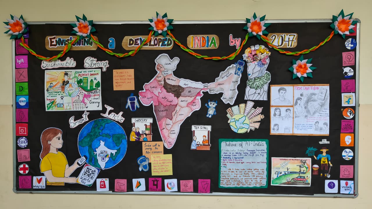 The Inter House Bulletin Board Competition was held on Saturday, 23rd August 2025. The theme, “Envisioning a Developed India by 2047,” inspired students to imagine what India could look like as it completes 100 years of independence.