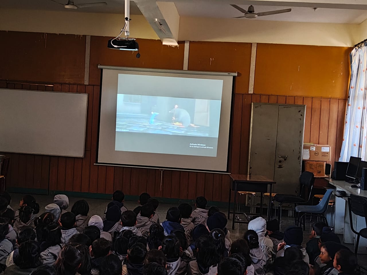 After the special assembly, the celebrations continued. The students of Nursery to Class II enjoyed watching a movie in the Computer Lab, while the students of Classes III to V gathered on the main field to watch exciting matches between the senior students and staff members, including a cricket match and a thrilling tug of war. The day was filled with joy, laughter, and memorable moments for all.