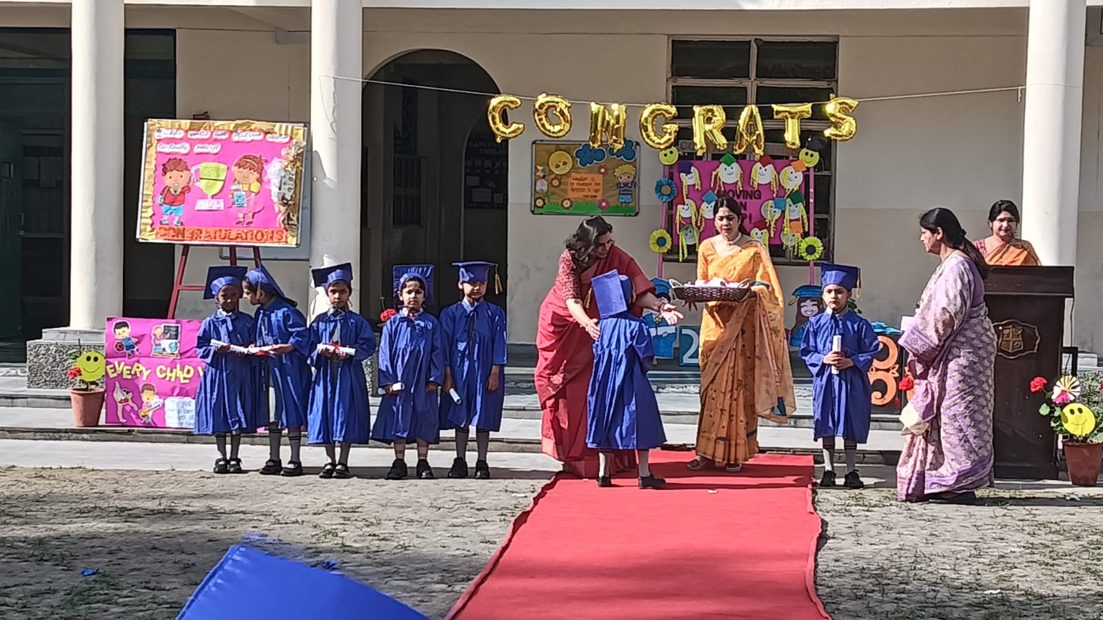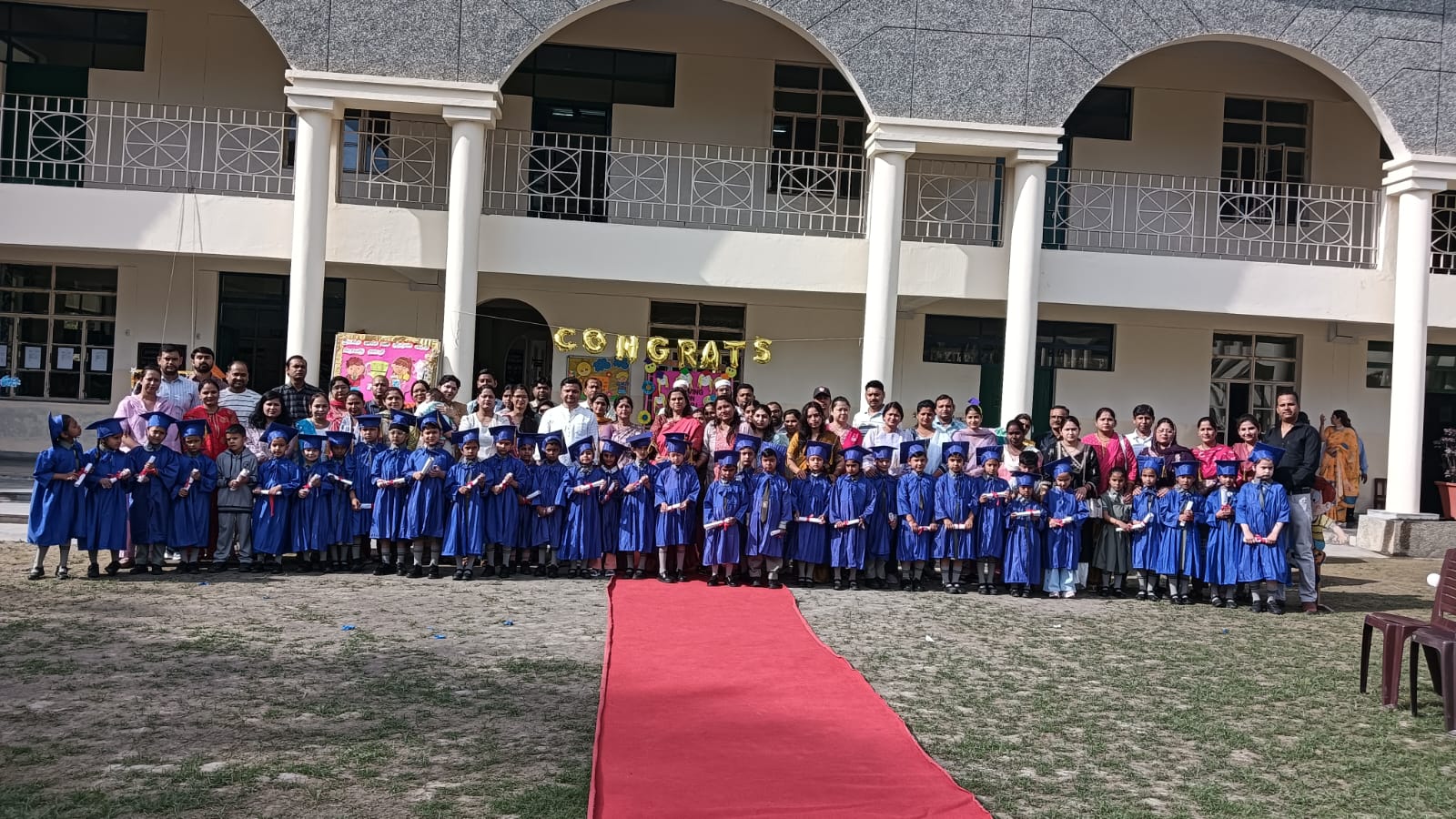The Graduation Ceremony for KG students was held successfully in the Primary Block on April 1, 2026. The program began with a warm welcome speechfollowed by a delightful medley of rhymes presented by Nursery and LKG students. The highlight of the event was the distribution of scrolls to the young graduates by the respected principal and headmistress. The ceremony concluded with a vote of thanks, marking a joyful and memorable occasion for students and teachers alike.