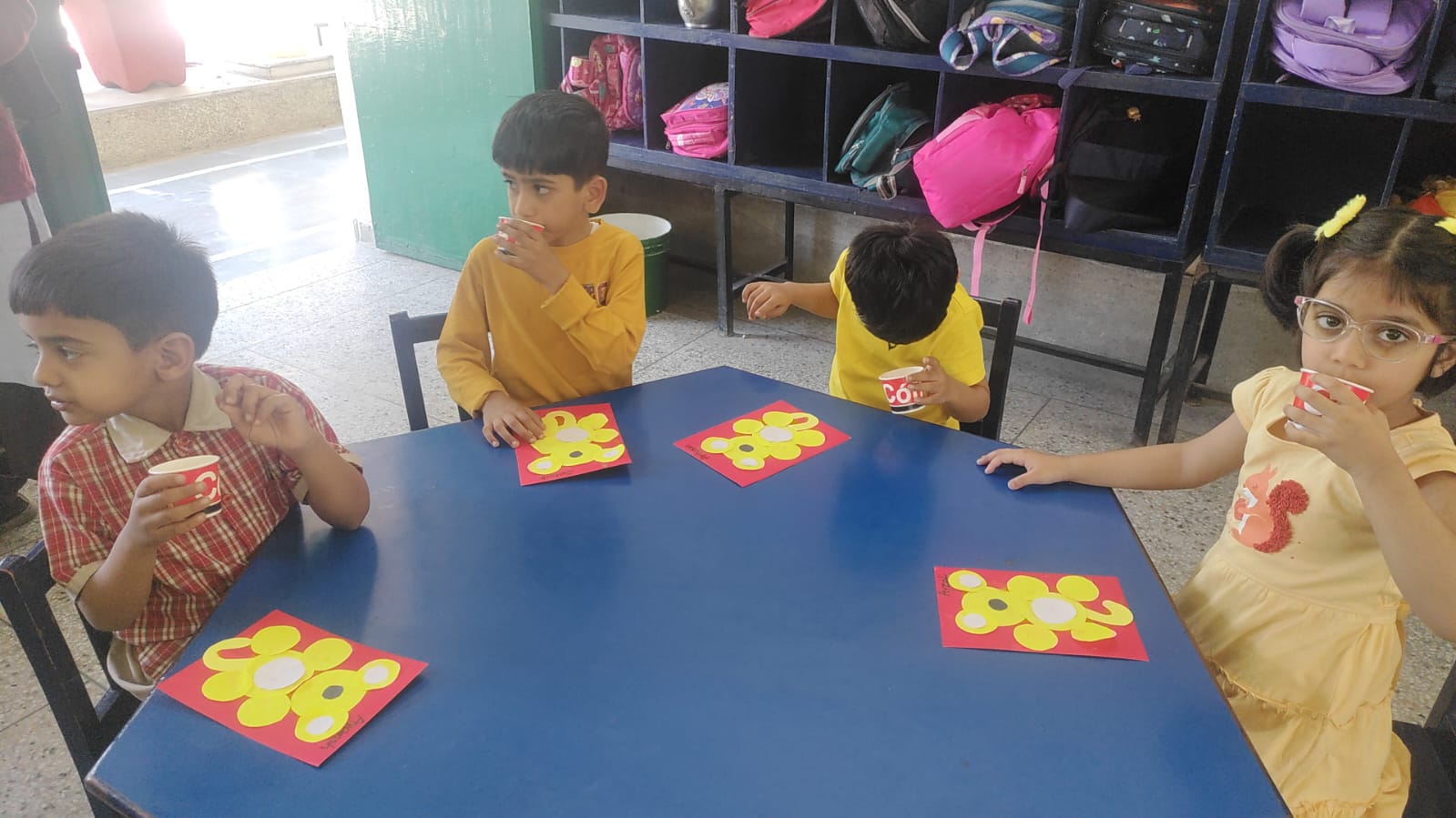 Fun activities were conducted such as fork printing, coloring objects and cotton dab painting.Students were served ‘Tang’ as a yellowdrink. Such thematic celebrations play a vital role in making learning enjoyable and memorable for our little learners.