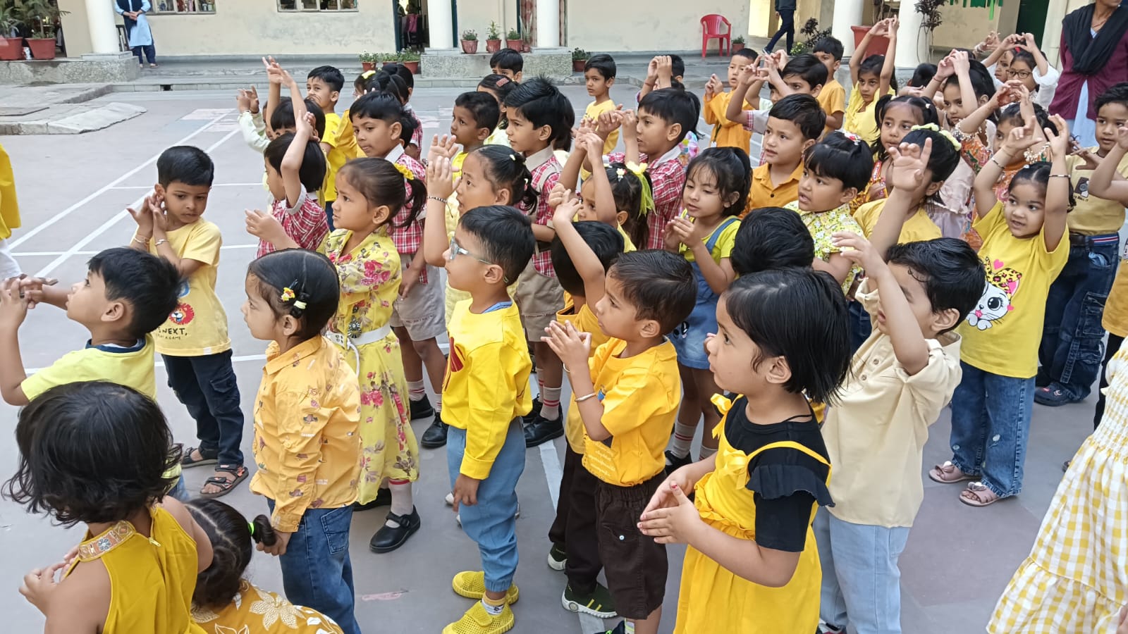 Yellow Day was celebrated with great enthusiasm and zeal by Kindergarten students on 15thApril 2026 in primary quadrangle.The classroom was decorated with yellow balloons and charts to create a bright and happy atmosphere.All the children were dressed up in yellow clothes,which made the celebration lively and colourful. The teacher gave real-life examples like bananas, lemons, Sun, flowers etc. Children were encouraged to play scavenger hunt with yellow things around them.