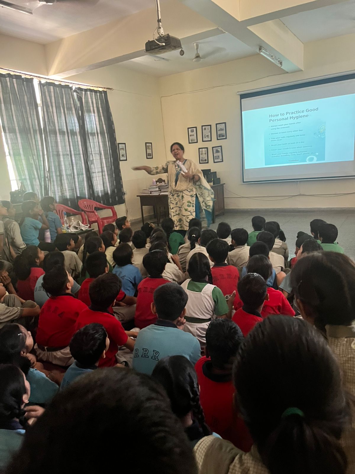 A workshop for classes III to V was conducted, which highlighted the role of hygiene in preventing diseases. In the PowerPoint presentation, the children were shown slides to maintain hygiene.