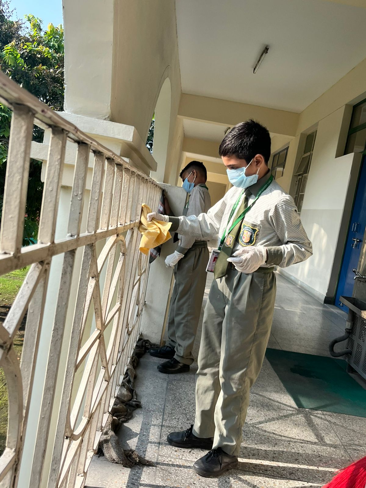 · Class V took charge of common areas, sweeping corridors, the assembly quadrangle, and playground.