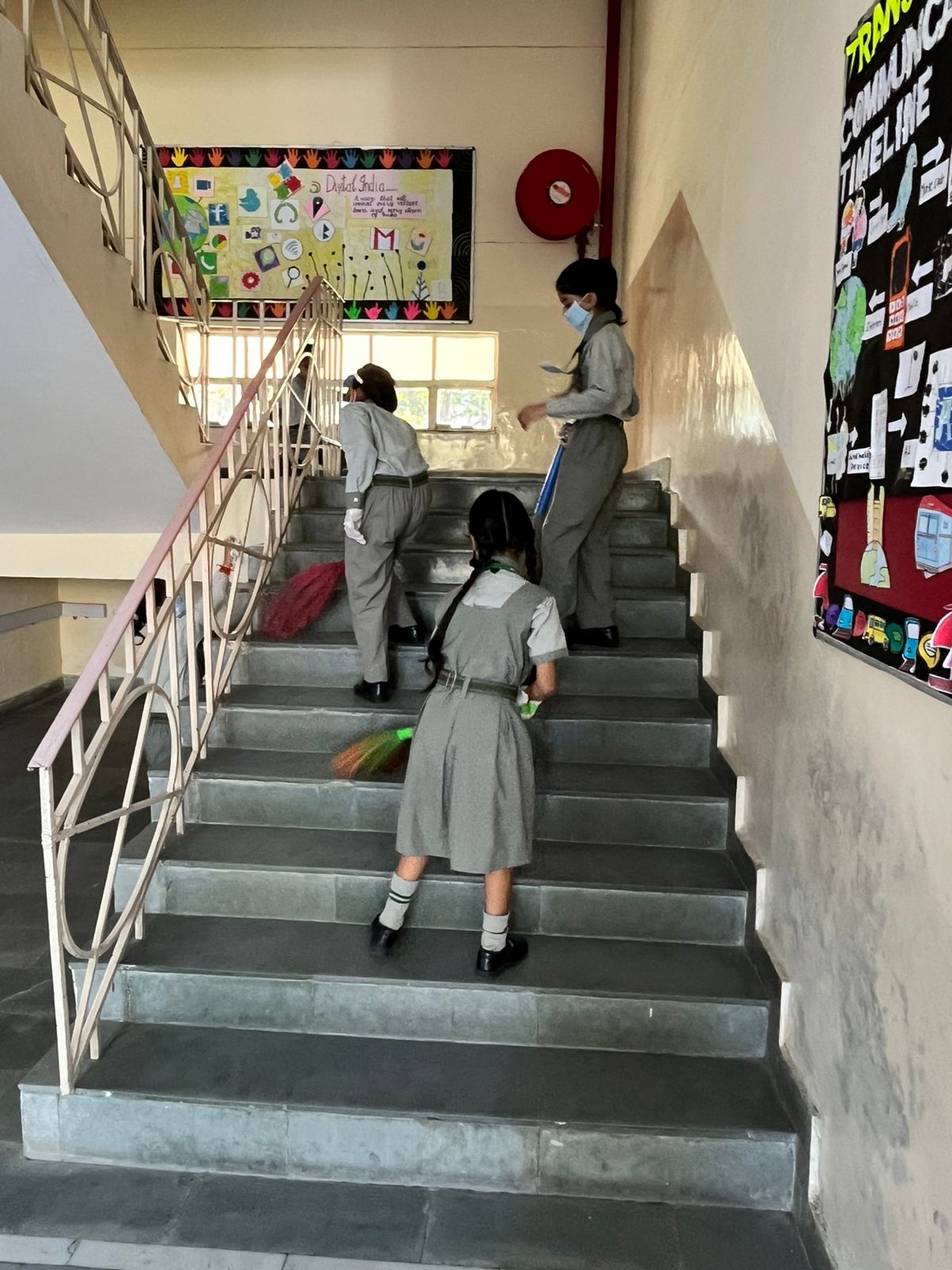 The children participated with great enthusiasm and teamwork. Armed with brooms and dusting cloths, they worked diligently across the primary block: