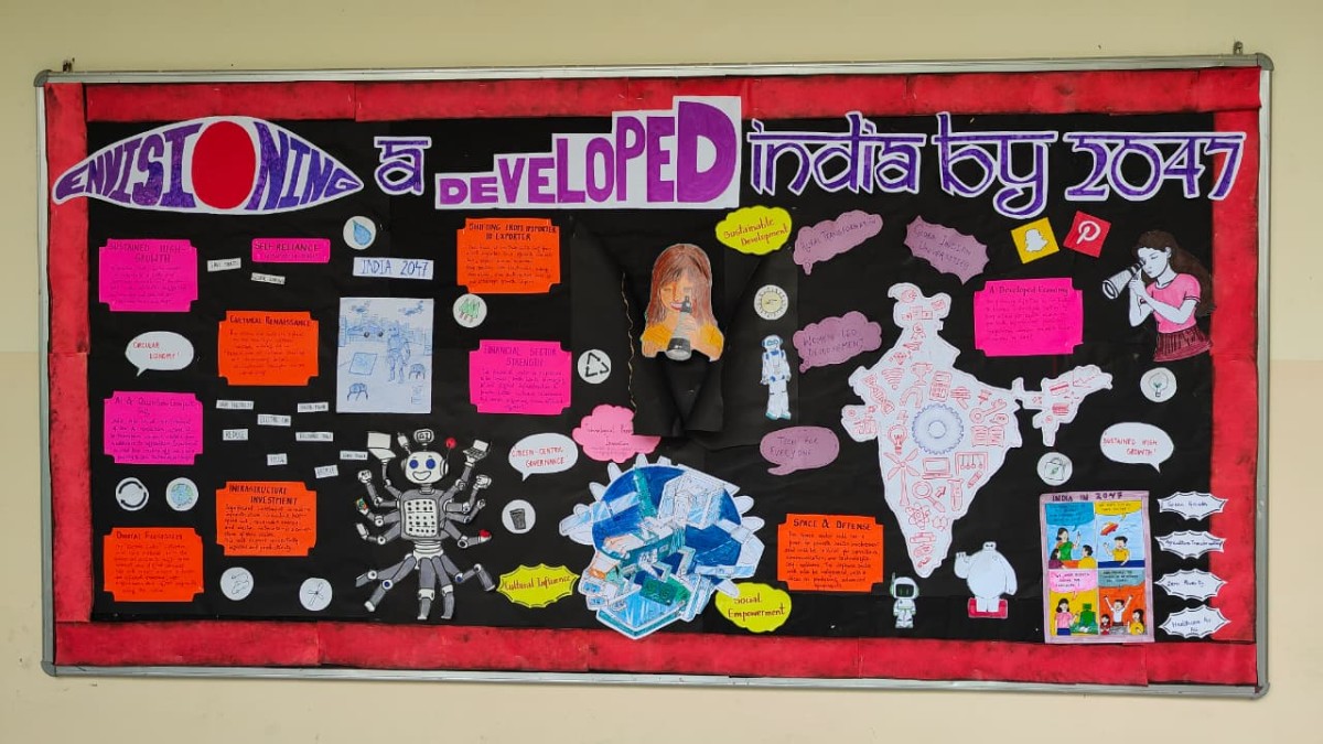 The Inter House Bulletin Board Competition was held on Saturday, 23rd August 2025. The theme, “Envisioning a Developed India by 2047,” inspired students to imagine what India could look like as it completes 100 years of independence.