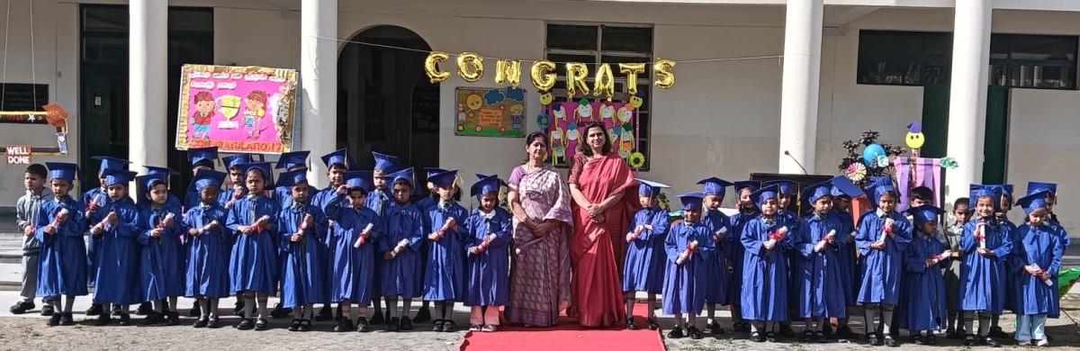 The Graduation Ceremony for KG students was held successfully in the Primary Block on April 1, 2026. The program began with a warm welcome speechfollowed by a delightful medley of rhymes presented by Nursery and LKG students. The highlight of the event was the distribution of scrolls to the young graduates by the respected principal and headmistress. The ceremony concluded with a vote of thanks, marking a joyful and memorable occasion for students and teachers alike.