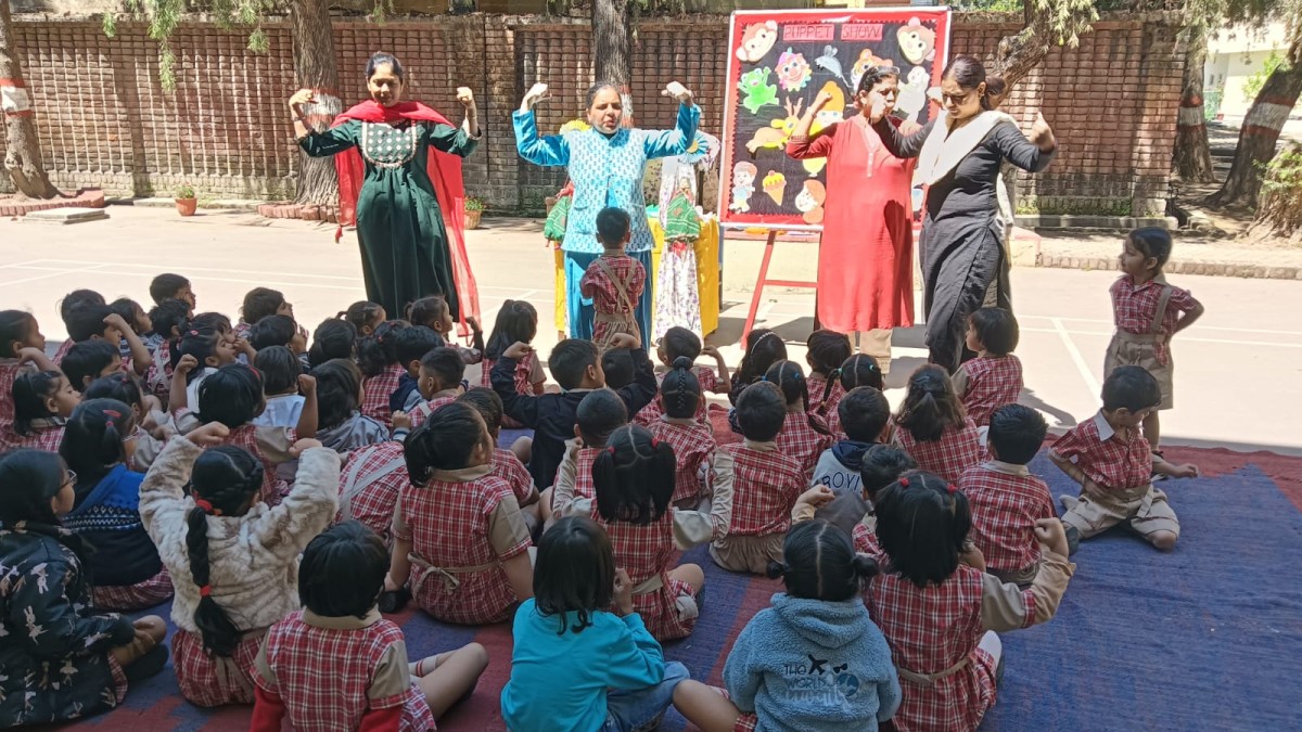 A puppet show was organized for the Kindergarten students on 10th April 2026 in primary quadrangle to provide an engaging, fun filled learning experience. Puppetry was selected as a medium because it combines entertainment with education, effectively capturing the attention of young learners. Glove puppets and stick puppets were used to narrate the story of“The elephant and friends”. The teachers brought characters to life through skilled voice modulation, singing and movements. The event promote imagination, language development and social emotional skills in stimulating environment.